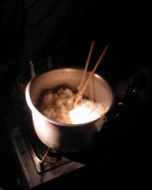 Around the "camp fire" (ie.portable stove)